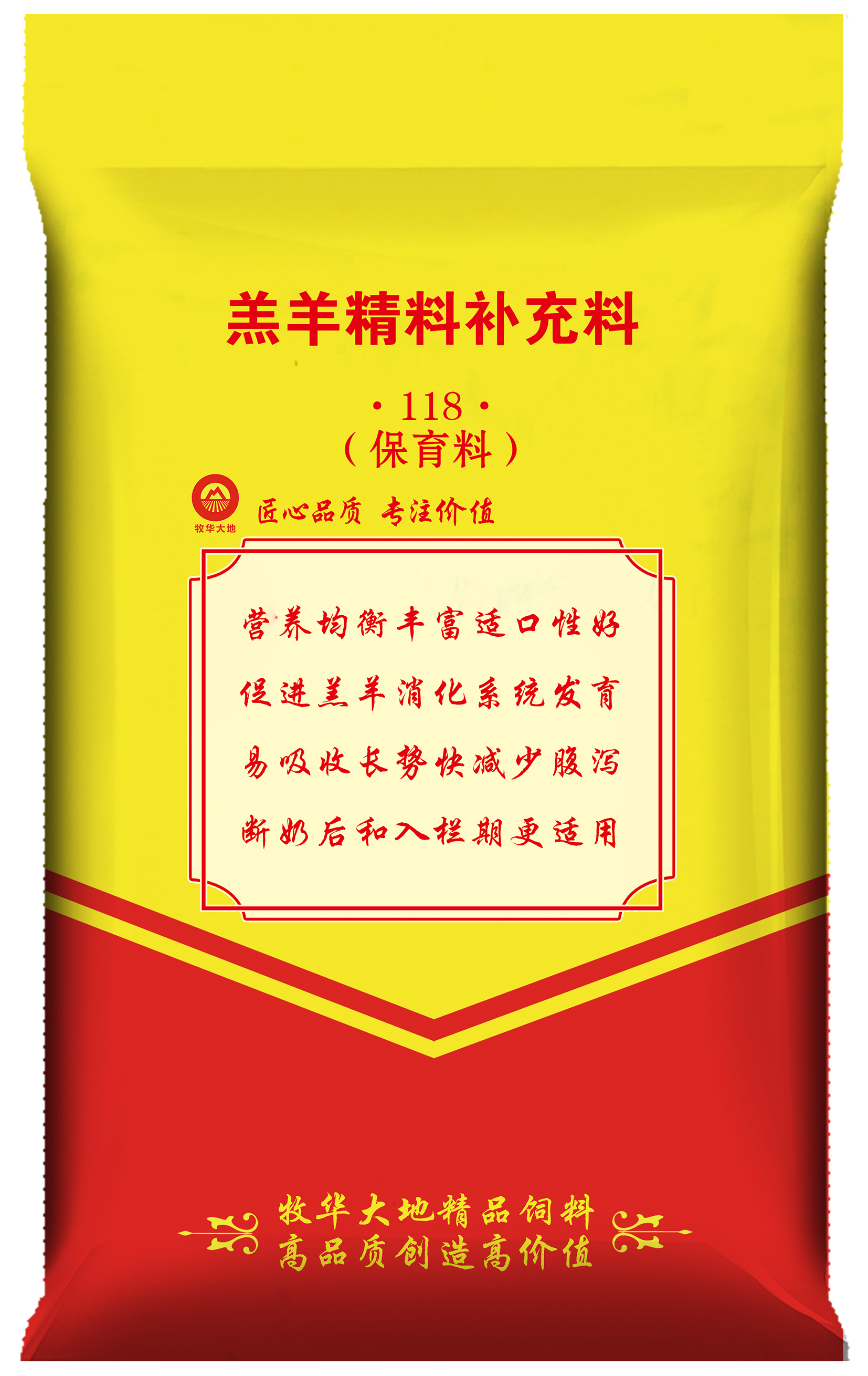 (1)自繁自育的羔羊在断奶后7天开始,由之前的饲喂开口料过渡到饲喂118,自由采食或每日3次,同时添加优质草粉,至90日龄更换育肥料。